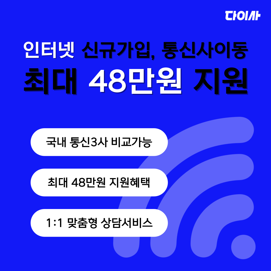 인터넷가입비교가 필요하다면, 인터넷요금제 비교부터 사은품 확인까지 다이사로 한 번에 끝내보세요!